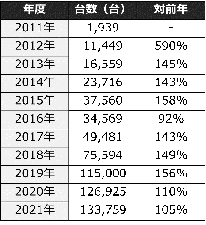 引用:JEMA統計データより(https://jema-net.or.jp/Japanese/data/jisyu/pdf/libsystem_2021nendo.pdf
