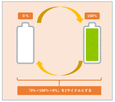 サイクル数とは、充電と放電をワンセットにした場合どのくらい充放電を繰り返しできるか回数で表したものです。
