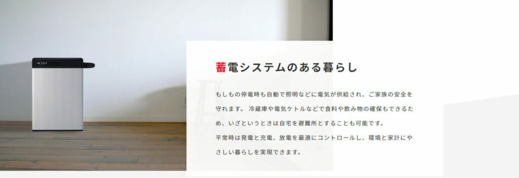特徴 ・ハイブリッド型 ・太陽光と同時設置の場合お得に購入できる ・多彩な商品ラインナップでライフスタイルに合った蓄電池を見つけることができる