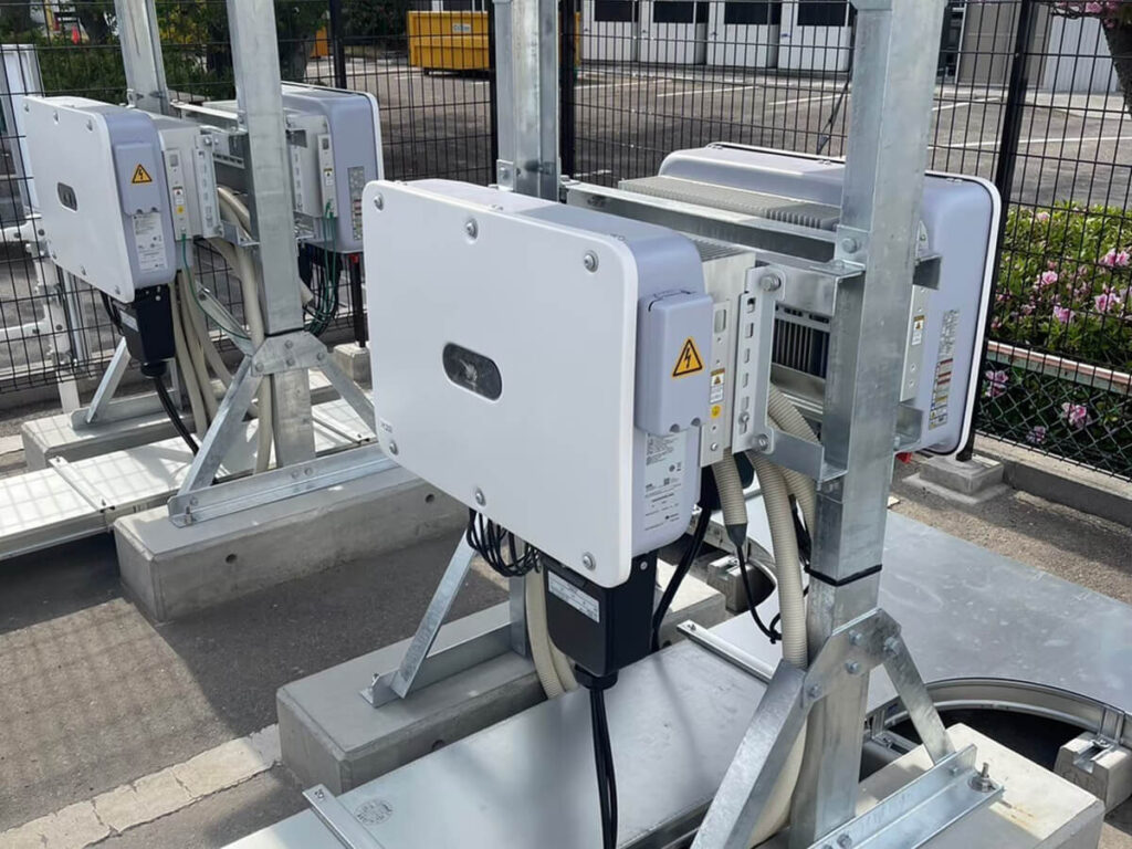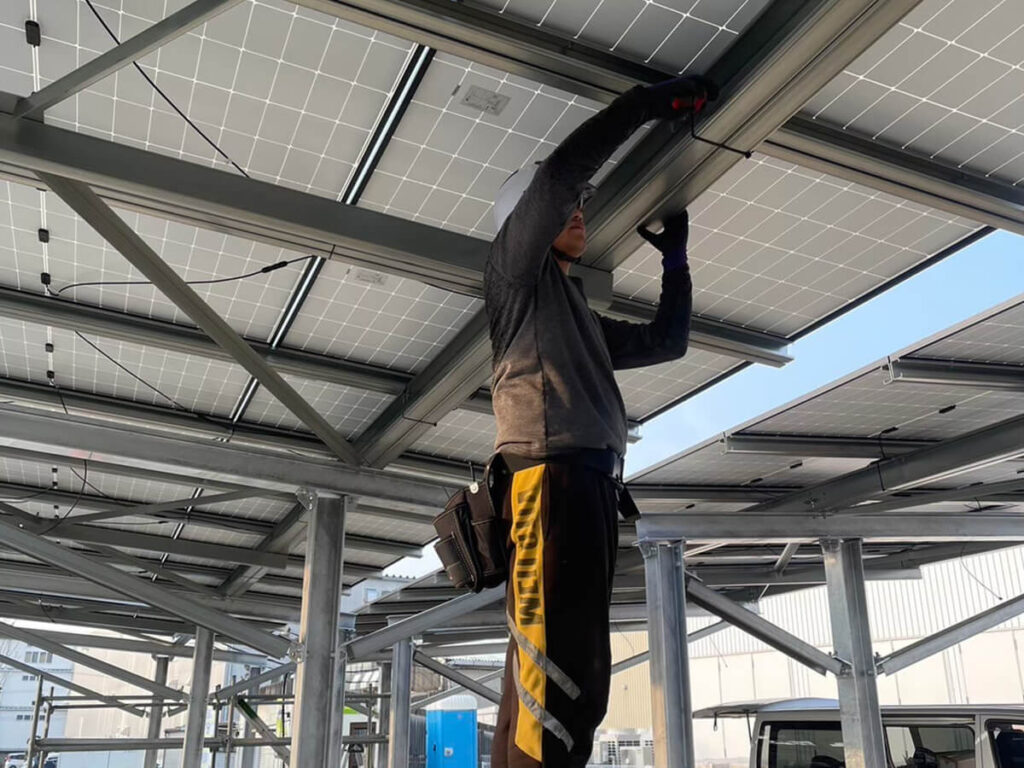 駐車場にソーラーカーポートを設置し、工場内動力トランスへ太陽光発電設備を連系しました。