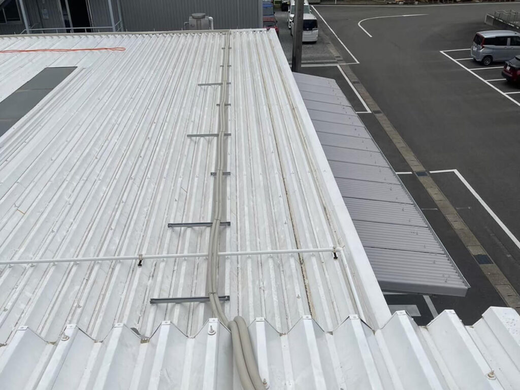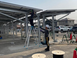 - ソーラーカーポート 支柱を建柱後、太陽光パネルを設置