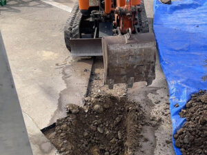 - アスファルトを掘削し、PCS用基礎を生コンクリートにて打設