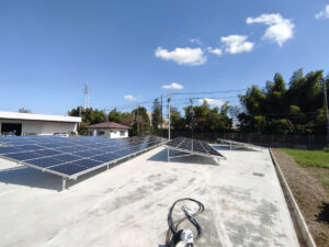 お客様がお持ちの工場内遊休地を利用して自家消費太陽光発電設備を設置しました。